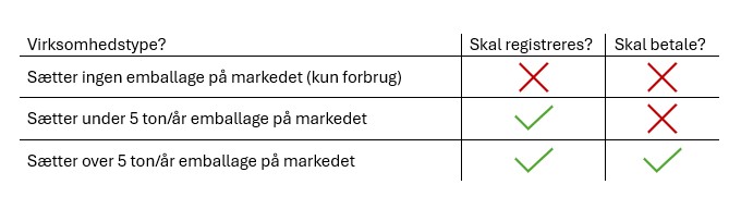 • Hvis I sætter under 5 ton emballage på markedet om året: